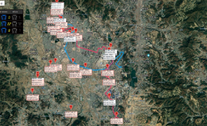 차량 운행경로 관제시스템 화면