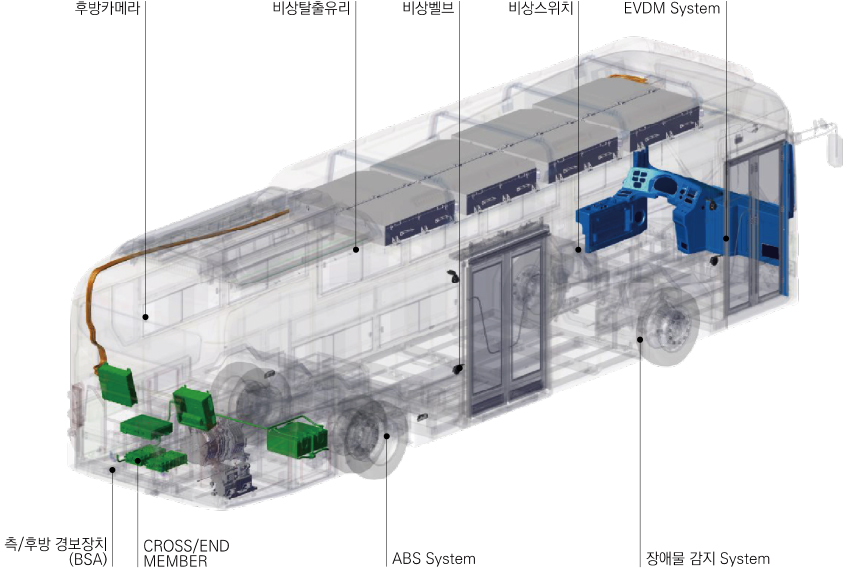 탄소복합소재(CFRP) 차체와 철저히 검증된 안전 설계가 적용된 SMART 110은 승객의 안전을 최우선으로 하는 동급 최고의 친환경 전기버스입니다.