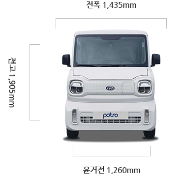 | 외관 사양 | 시그니처 LED 헤드램프(주간주행 등 포함), LED 프론트 안개등, LED 리어 램프, 슬라이딩 도어형 앞문, 145/60R13 타이어, 13인치 알루미늄 휠, 앞/뒤 머드가드, 250kg 화물 적재량 탑 박스 |