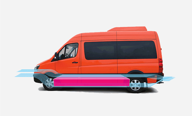 배터리팩의 차체하단 배치로 인해 높은 전고에 비해 안정적인 무게중심 구현 모터와 배터리팩의 원활한 냉각을 위한 공기흐름을 터널구조로 구현